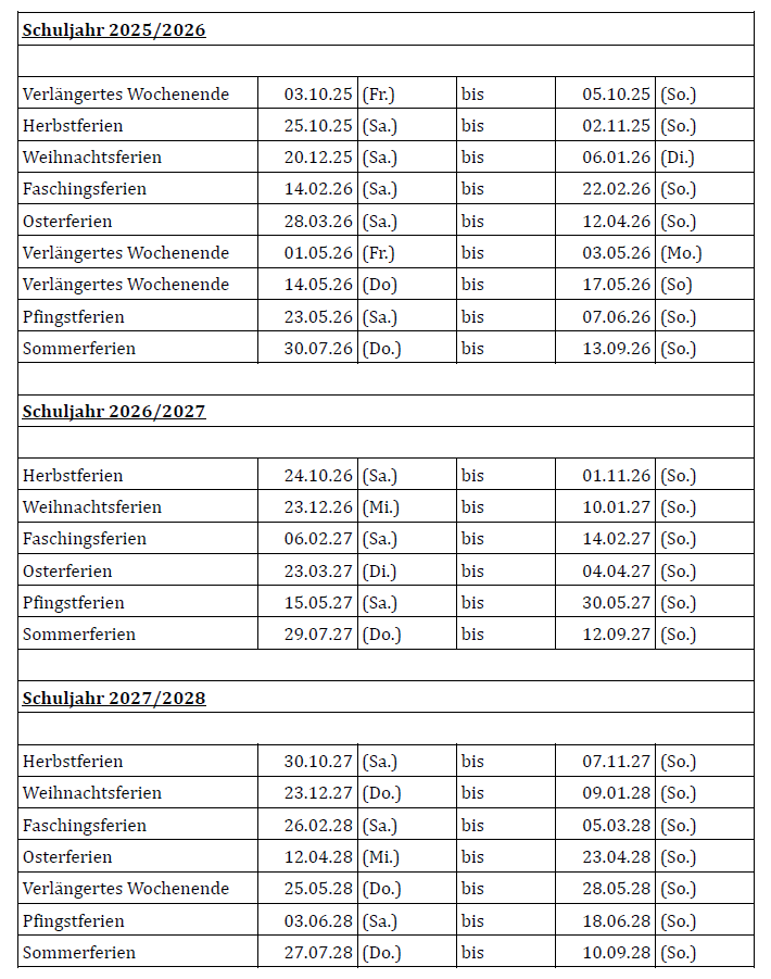 Sie werden gebeten, Ihre Urlaubspläne diesen Ferienterminen anzupassen.